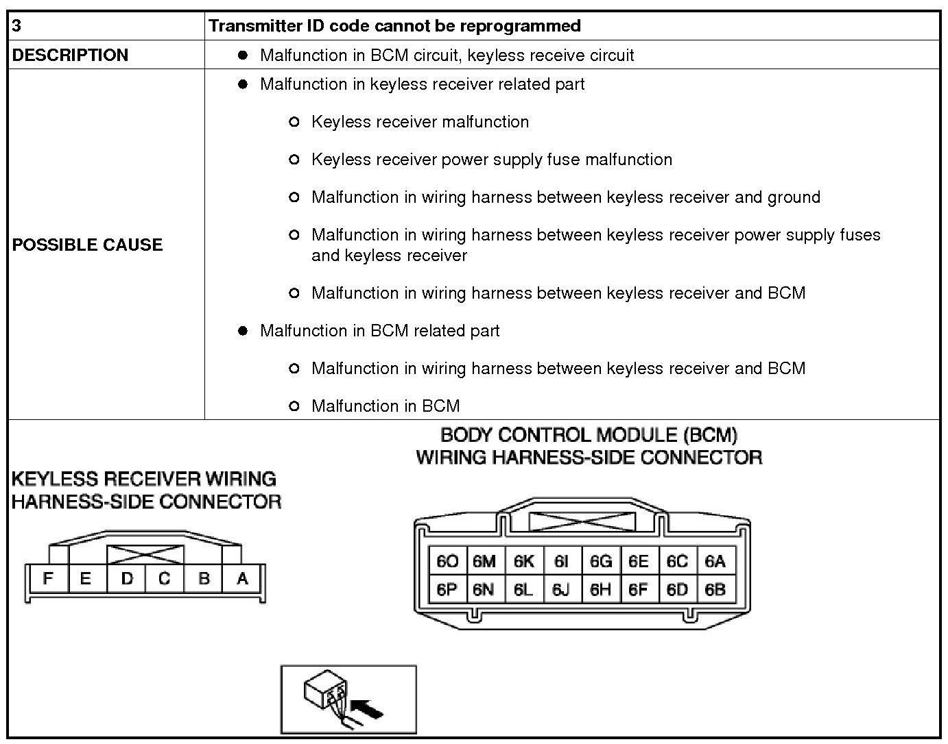 NO.3 TRANSMITTER ID CODE CANNOT BE REPROGRAMMED [KEYLESS ENTRY SYSTEM]