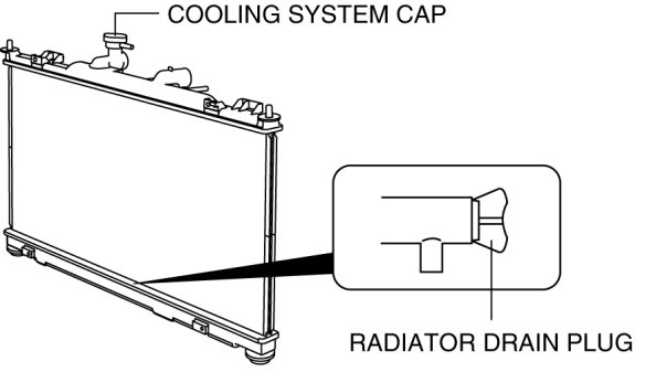 - Never remove the cooling system cap or loosen the radiator drain plug while the engine is running, or when the engine and radiator are hot. Scalding engine coolant and steam may shoot out and cause serious injury. It may also damage the engine and cooling system.