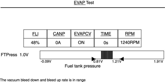 - Fuel Level must be maintained within 15 %-85 %. PCM will cancel the EVAP Test If the Fuel Level is lower than 15 % or higher than 85 %.