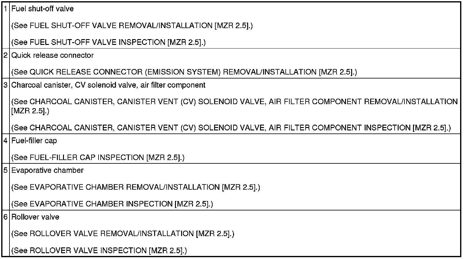 EMISSION SYSTEM LOCATION INDEX [MZR 2.5]