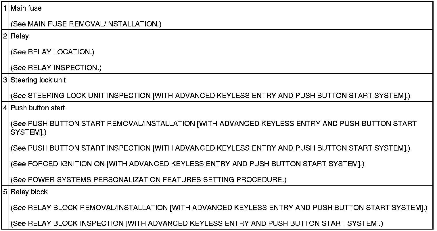 POWER SYSTEM LOCATION INDEX [WITH ADVANCED KEYLESS ENTRY AND PUSH BUTTON START SYSTEM]