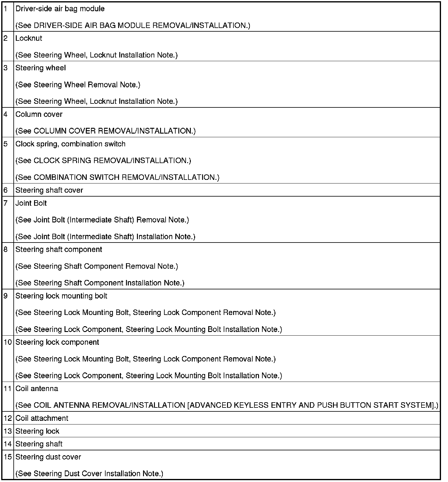 Steering Shaft Component Removal Note