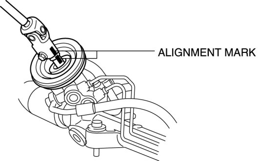 2. Place alignment marks on the intermediate shaft joint, and the steering gear for proper installation.