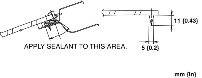 8. If the sealant has come off completely in any one place, apply some primer after degreasing, and allow it approx. 30 min. to dry. Then apply 2 mm {0.08 in} thickness of new sealant.