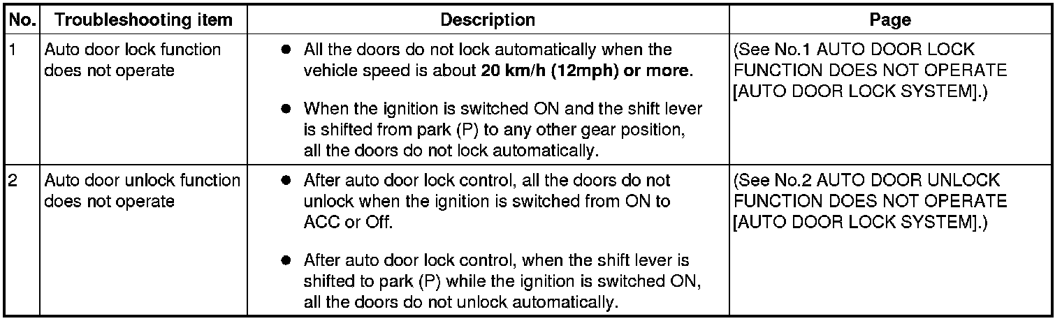 SYMPTOM TROUBLESHOOTING CHART [AUTO DOOR LOCK SYSTEM]