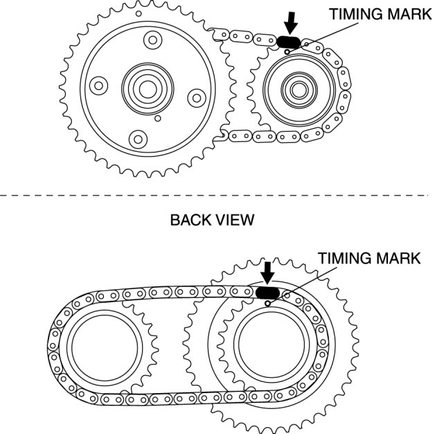2. If the timing marks on the timing chain are not evident, place timing marks on the timing chain using an indelible ink marker.