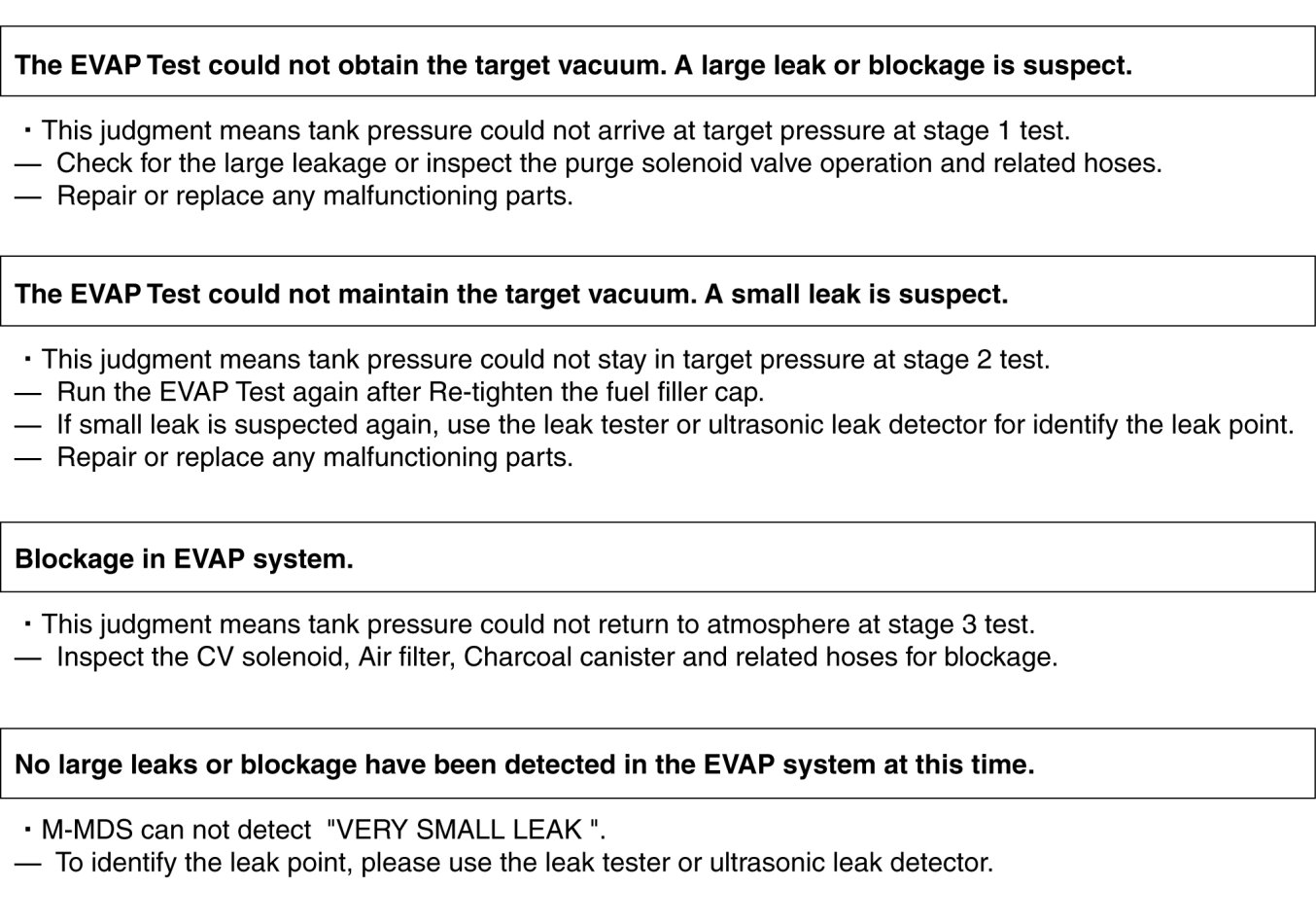 - M-MDS detect the small / large leak or blockage based on fuel tank pressure at the end of EVAP Test.
