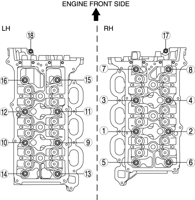 Cylinder HeadTighten the cylinder head bolts in the order in 6 steps in the order shown in the figure.