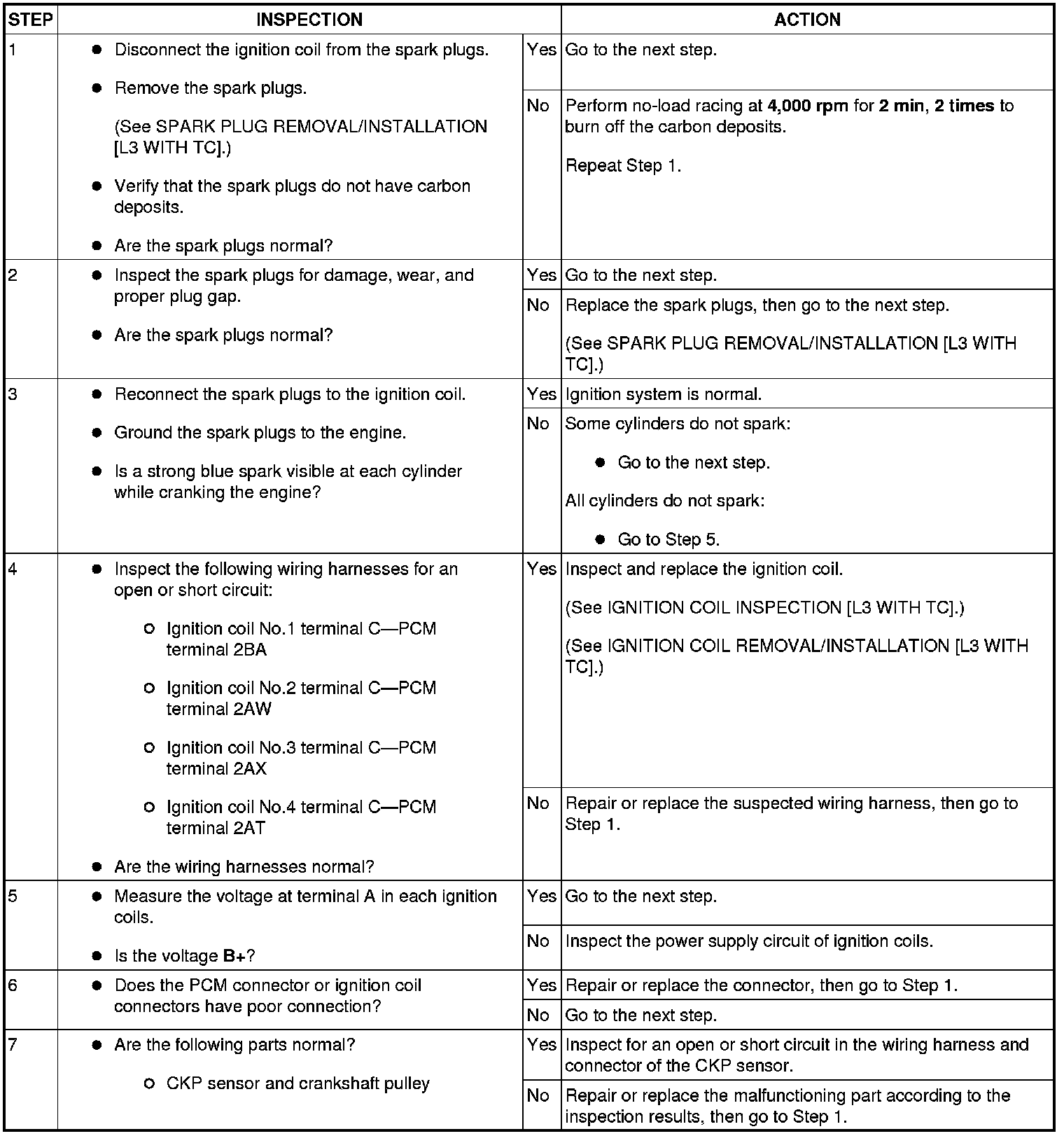 3. Inspect the ignition system in the following procedure.