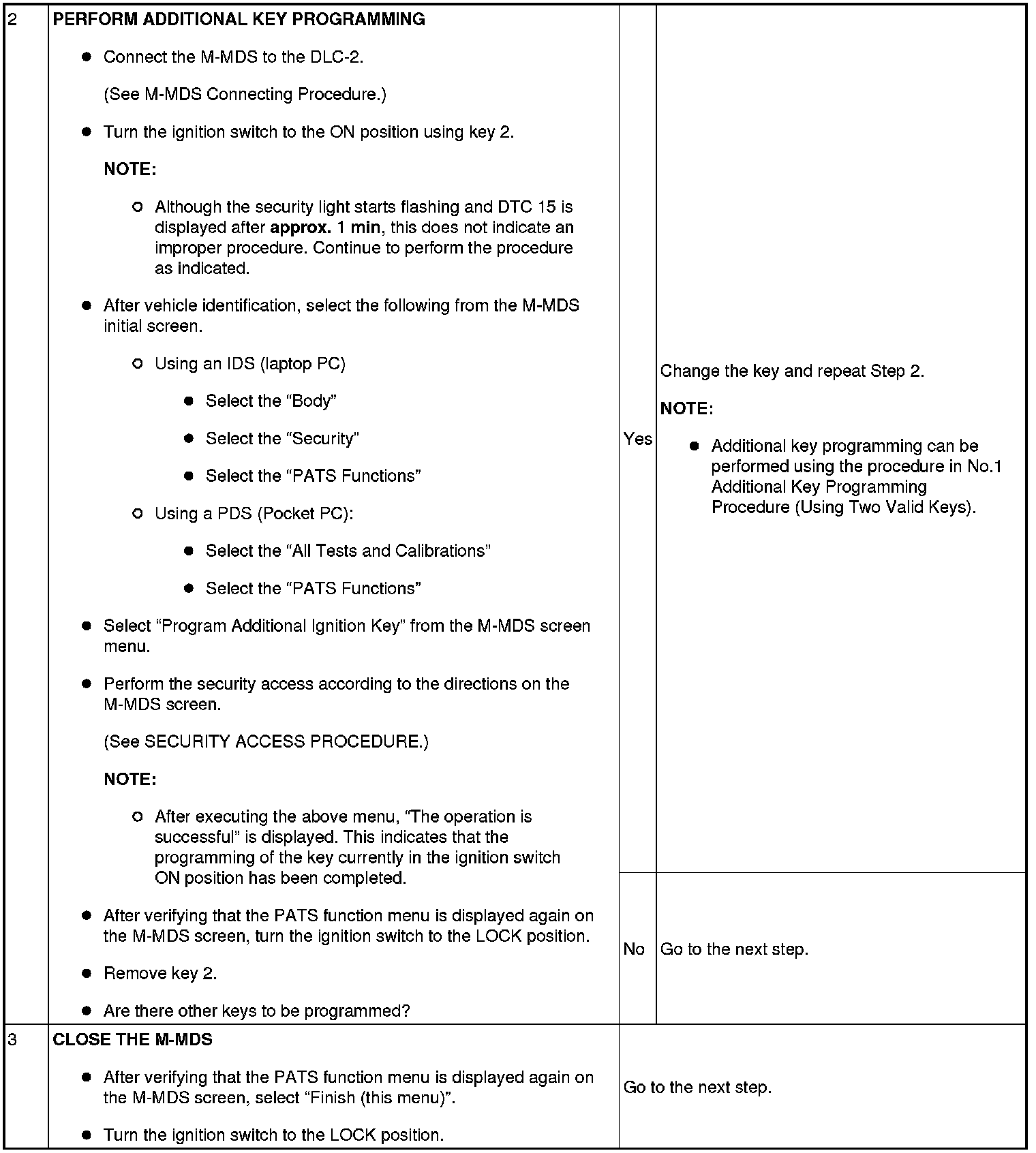 No.7 Programming Procedure Due to Simultaneous Replacement of Immobilizer System-related Parts (PCM, Keyless Control Module, and Steering Lock Unit)