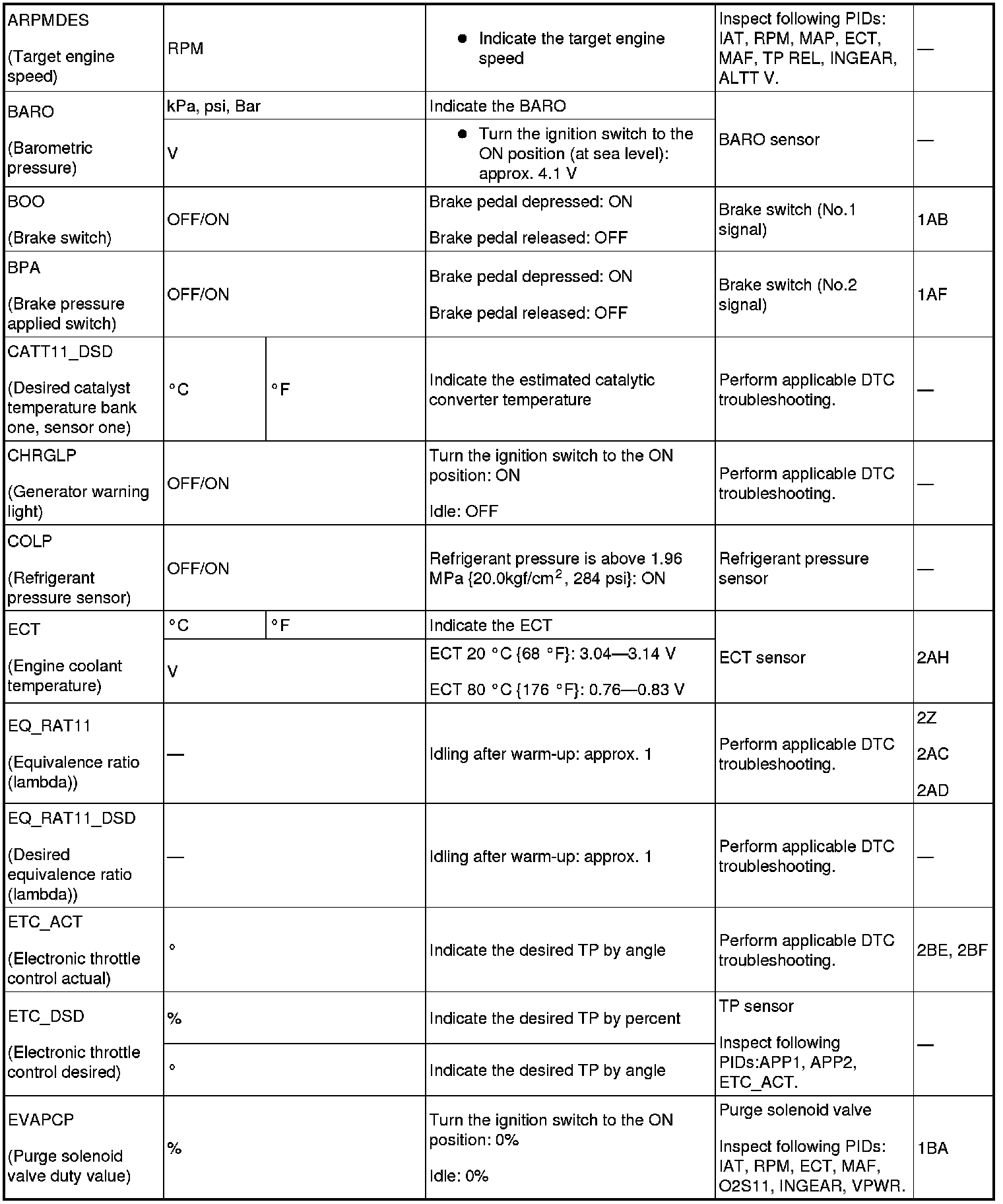 - Following PIDs are for the ATX models. If inspects for following PIDs, PID/Data Monitor Inspection