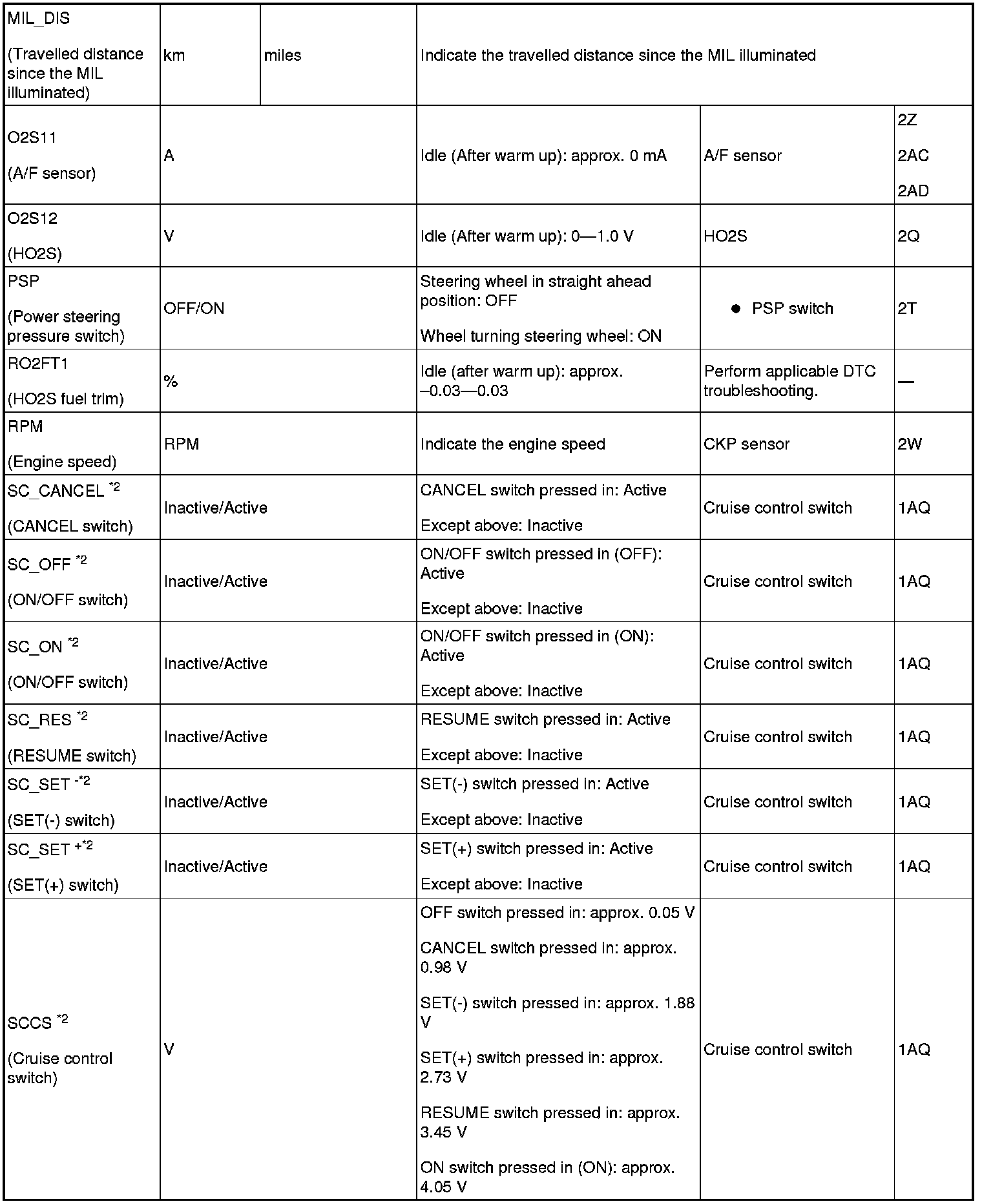 PID/DATA monitor table (reference)