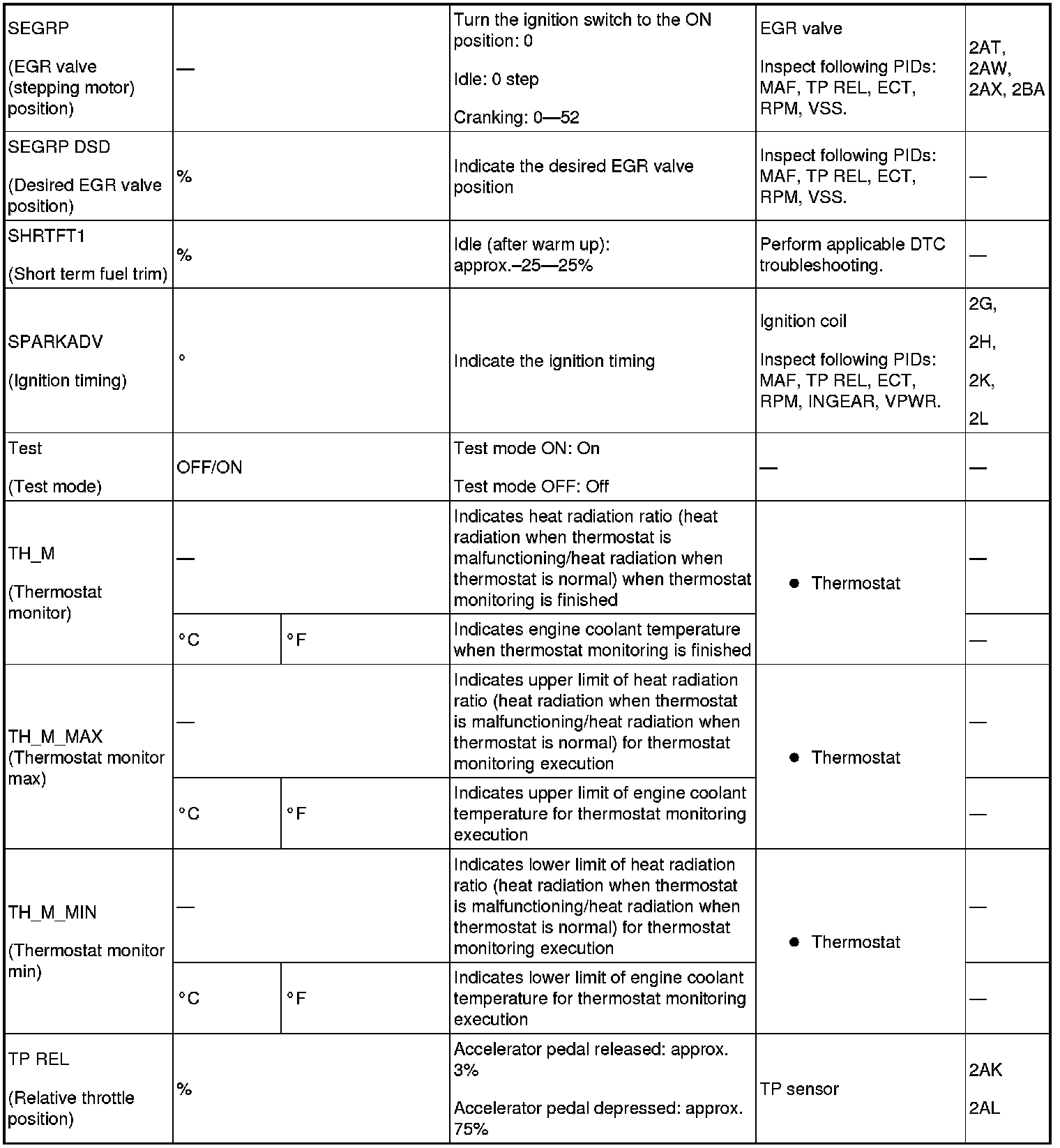 - PIDs for the following parts are not available on this model. Go to the appropriate inspection part.