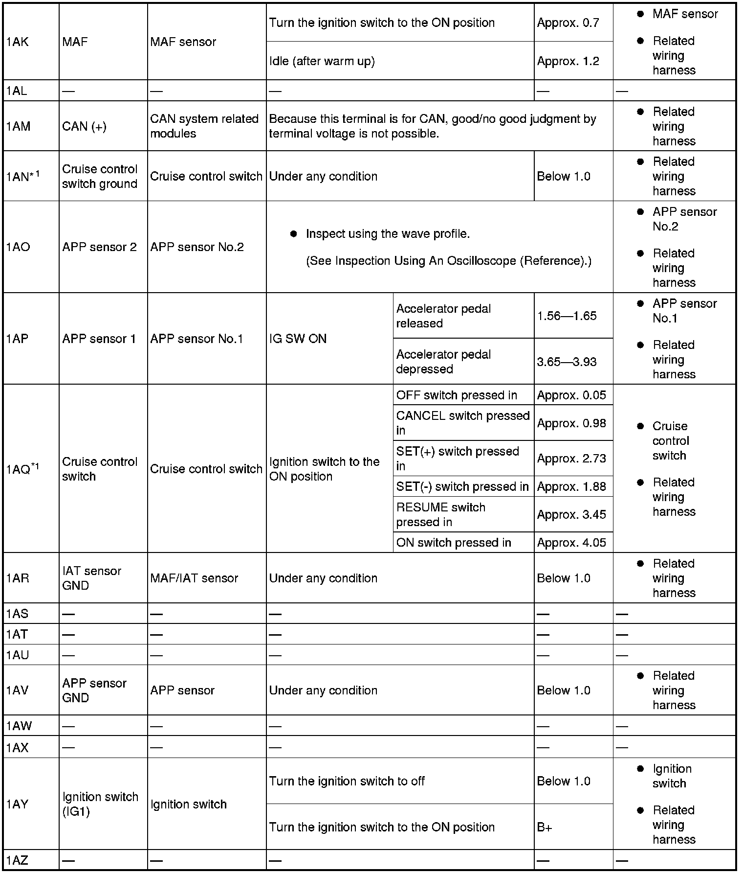- The PCM terminal voltages vary with change in measuring conditions and vehicle conditions. Always carry out a total inspection of the input systems, output systems, and PCM to determine the cause of trouble. Otherwise, a wrong diagnosis will be made.