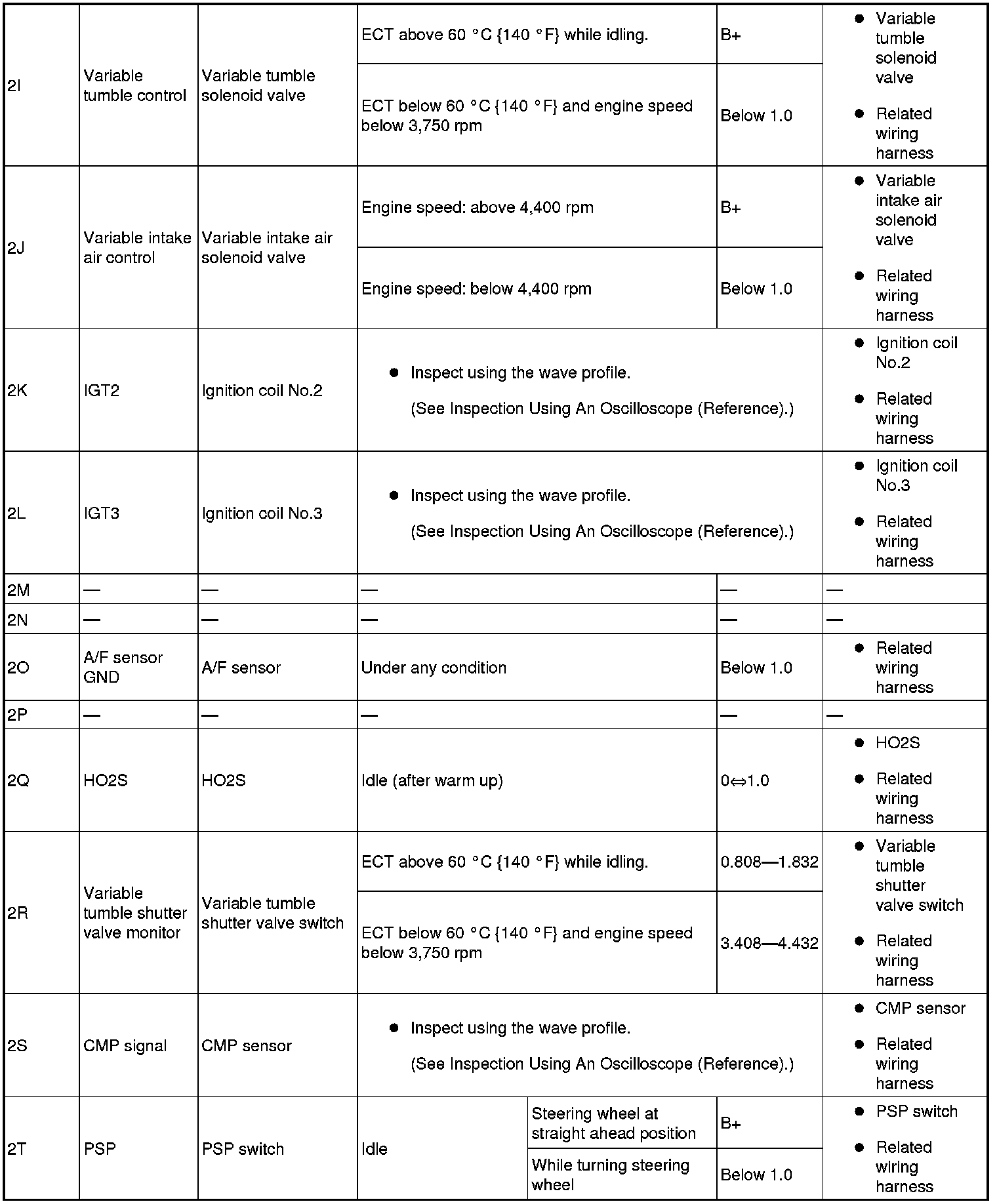 - IGT3(ignition coil No.3): 2L(+)-body ground(-)