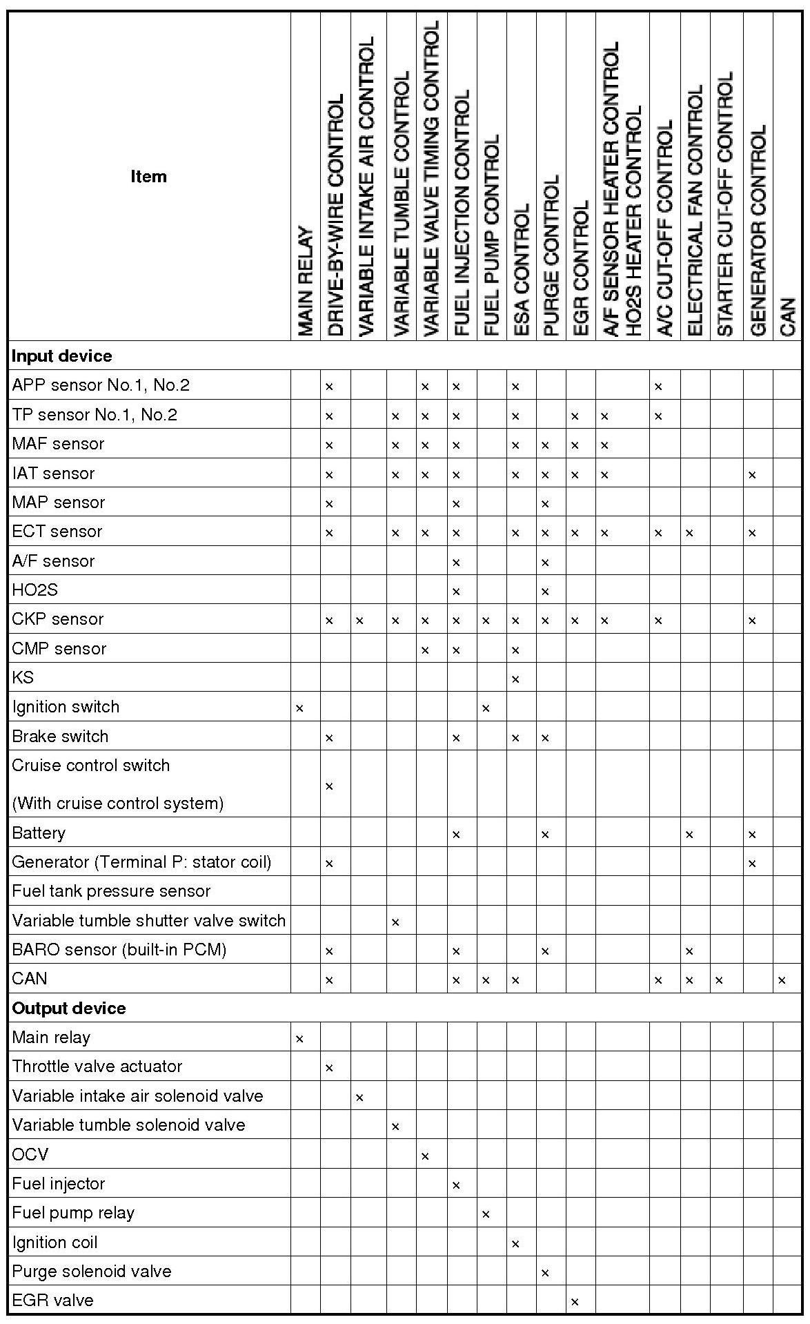 Control System Device And Control Relationship Chart