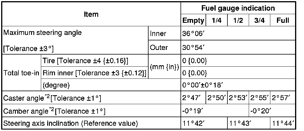 Front wheel alignment (Unloaded)*1