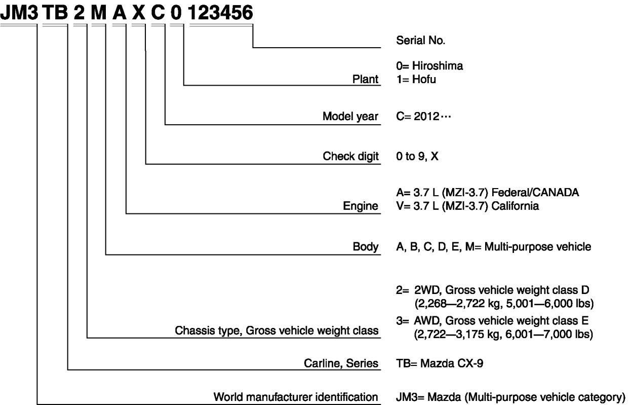 VEHICLE IDENTIFICATION NUMBER (VIN) CODE