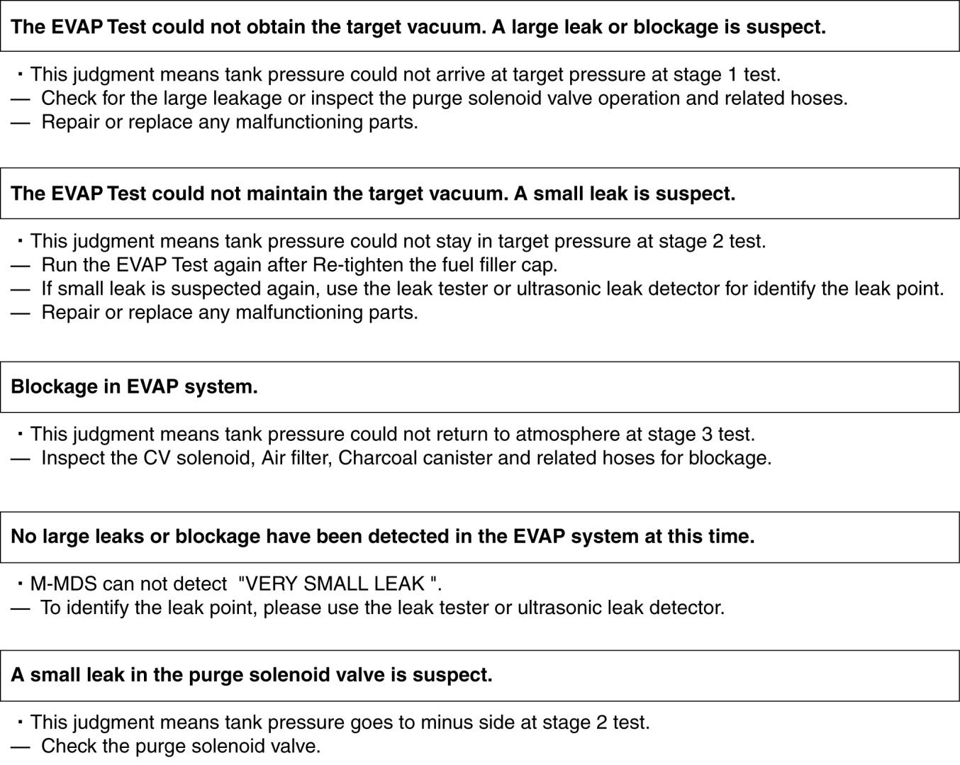- M-MDS detect the small / large leak or blockage based on fuel tank pressure at the end of EVAP Test.