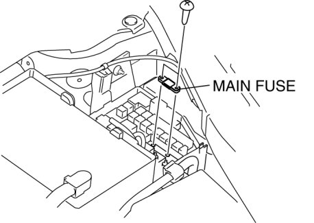 - Be sure the negative battery terminal is disconnected before replacing a main fuse.