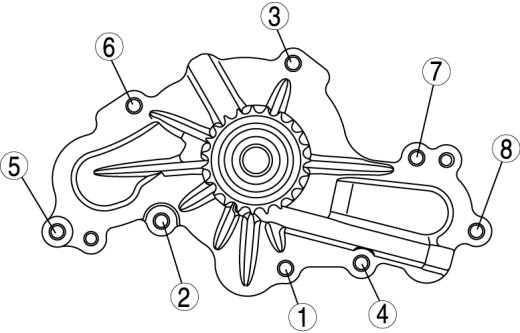 Tighten the water pump bolts in the order shown in the figure.