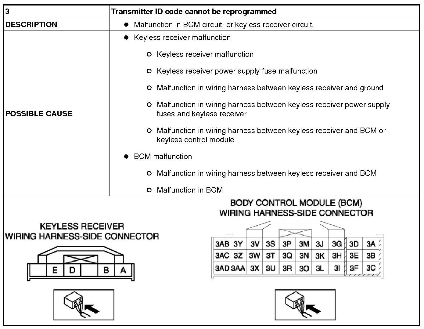 NO.3 TRANSMITTER ID CODE CANNOT BE REPROGRAMMED [KEYLESS ENTRY SYSTEM]