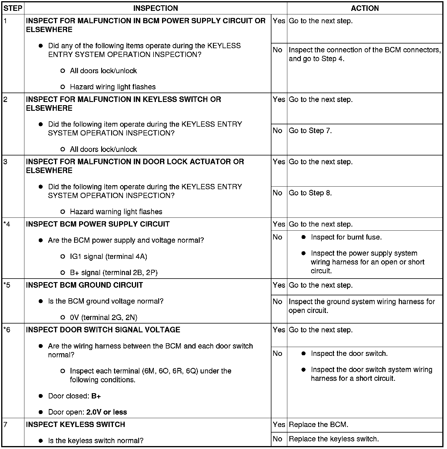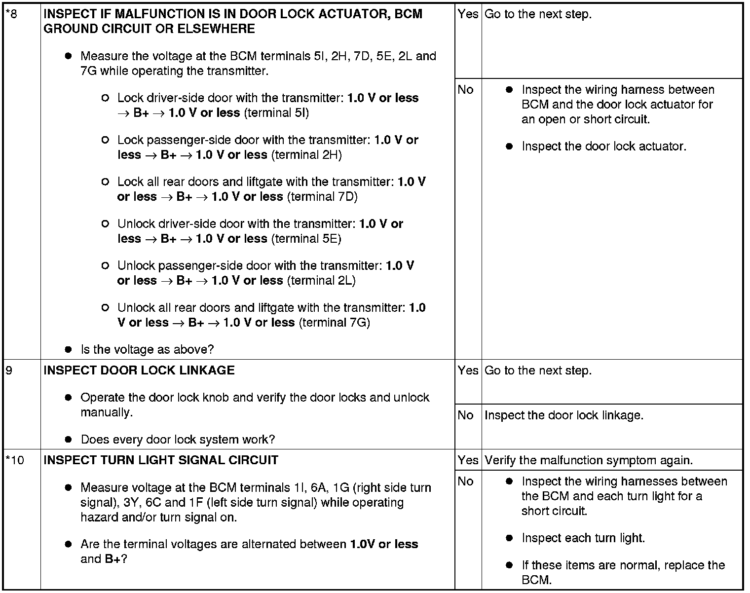 Home >> Mazda >> 2012 >> CX-9 FWD V6-3.7L >> Repair and Diagnosis >> Body and Frame >> Locks >> Keyless Entry >> Testing and Inspection >> Symptom Related Diagnostic Procedures >> Keyless Entry System >> No. 1 Keyless Entry System Does Not Operate Normally