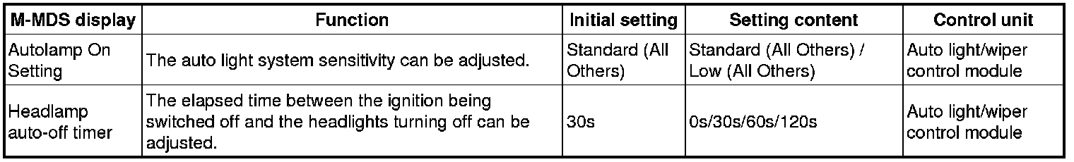 Home >> Mazda >> 2012 >> CX-9 FWD V6-3.7L >> Repair and Diagnosis >> Lighting and Horns >> Testing and Inspection >> Programming and Relearning >> Lighting System Personalization Features Setting Procedure