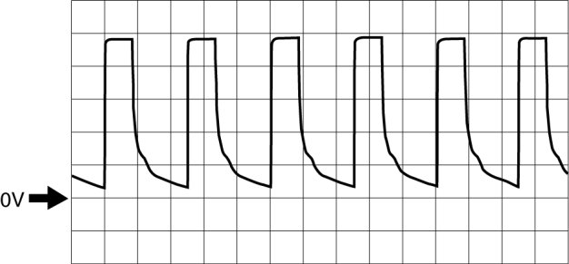 - Oscilloscope setting: 1 V/DIV (Y), 200 microsecond/DIV (X), DC range