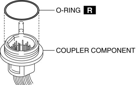 4. Inspect the condition of the connector pin of the coupler component (foreign material, bent pins, broken pins) and O-ring after the TCM is removed.