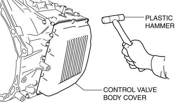 14. Using a plastic hammer, tap the control valve body cover to remove it.