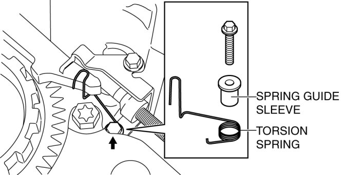 34. Remove the torsion spring and the spring guide sleeve.