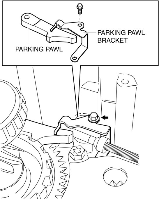 35. Remove the parking pawl and the parking pawl bracket.