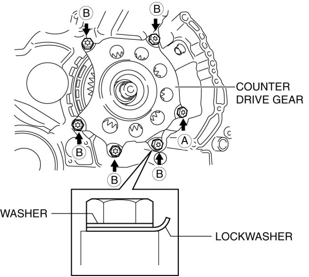 46. Remove the lockwashers, washers and the counter drive gear.