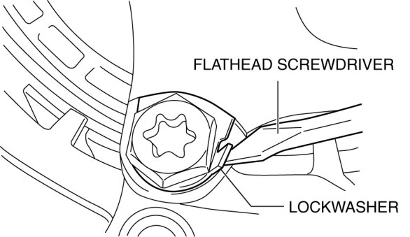 45. Using a flathead screwdriver and a hammer, pry back the crimp on the lockwashers.