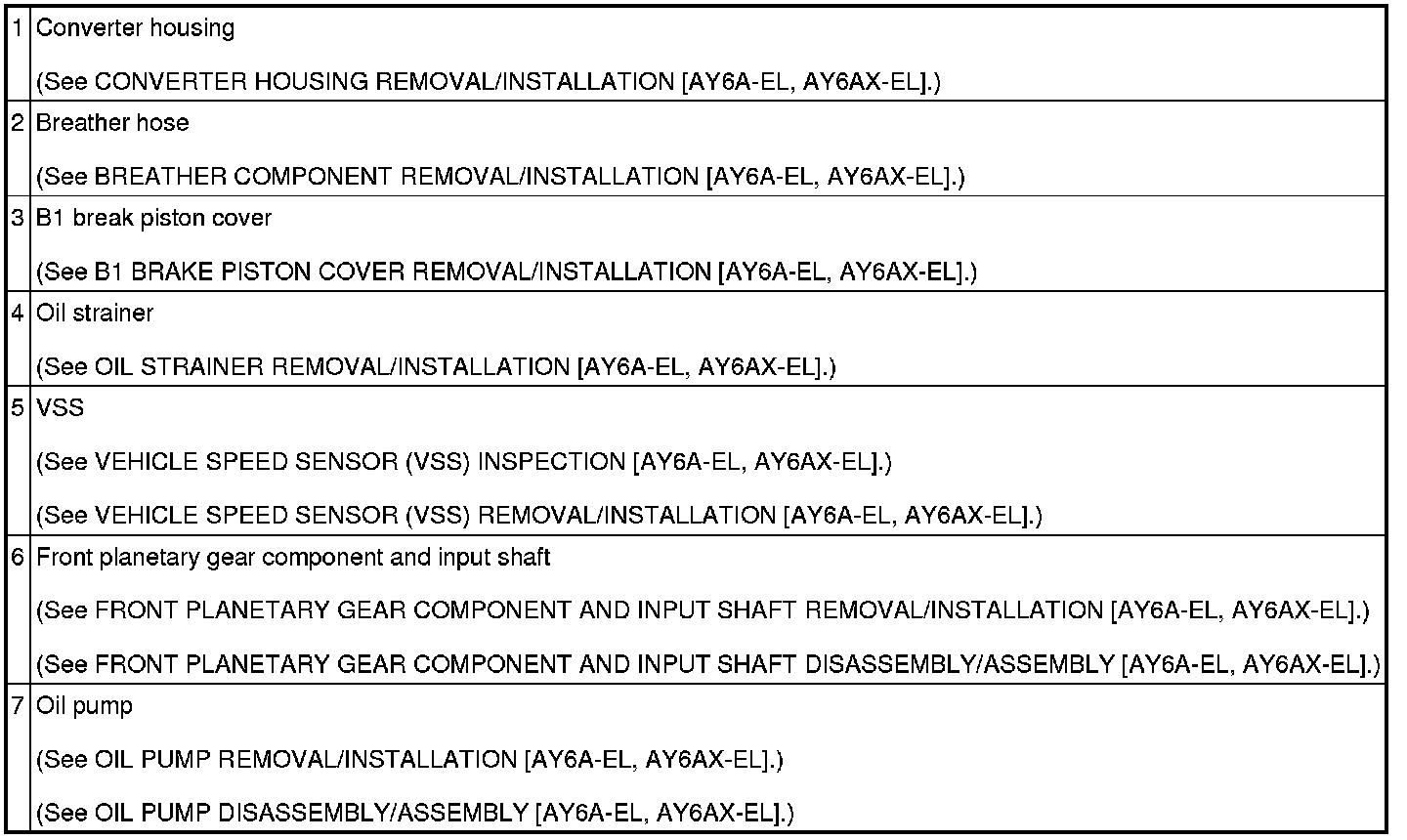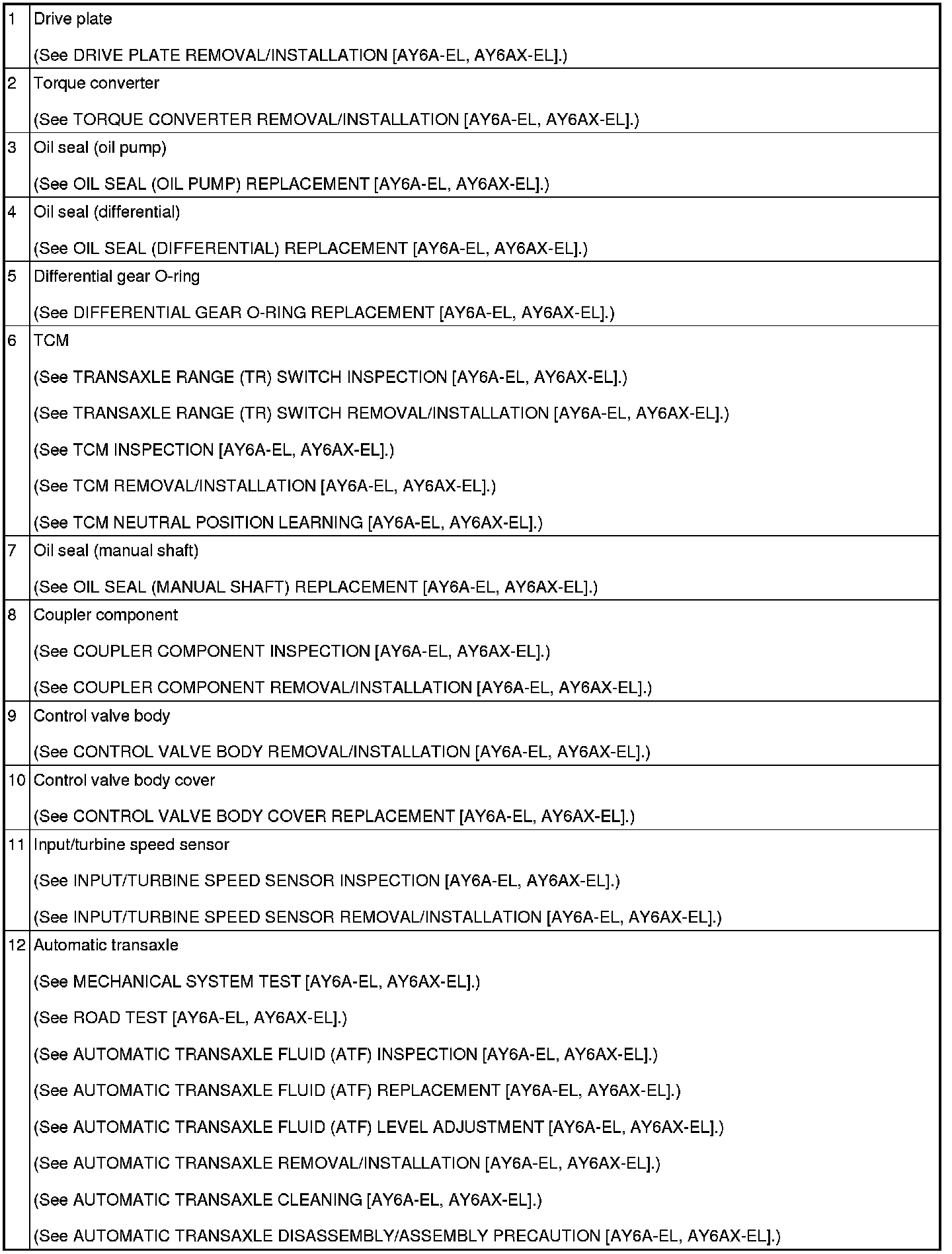 AUTOMATIC TRANSAXLE LOCATION INDEX [AY6A-EL, AY6AX-EL]