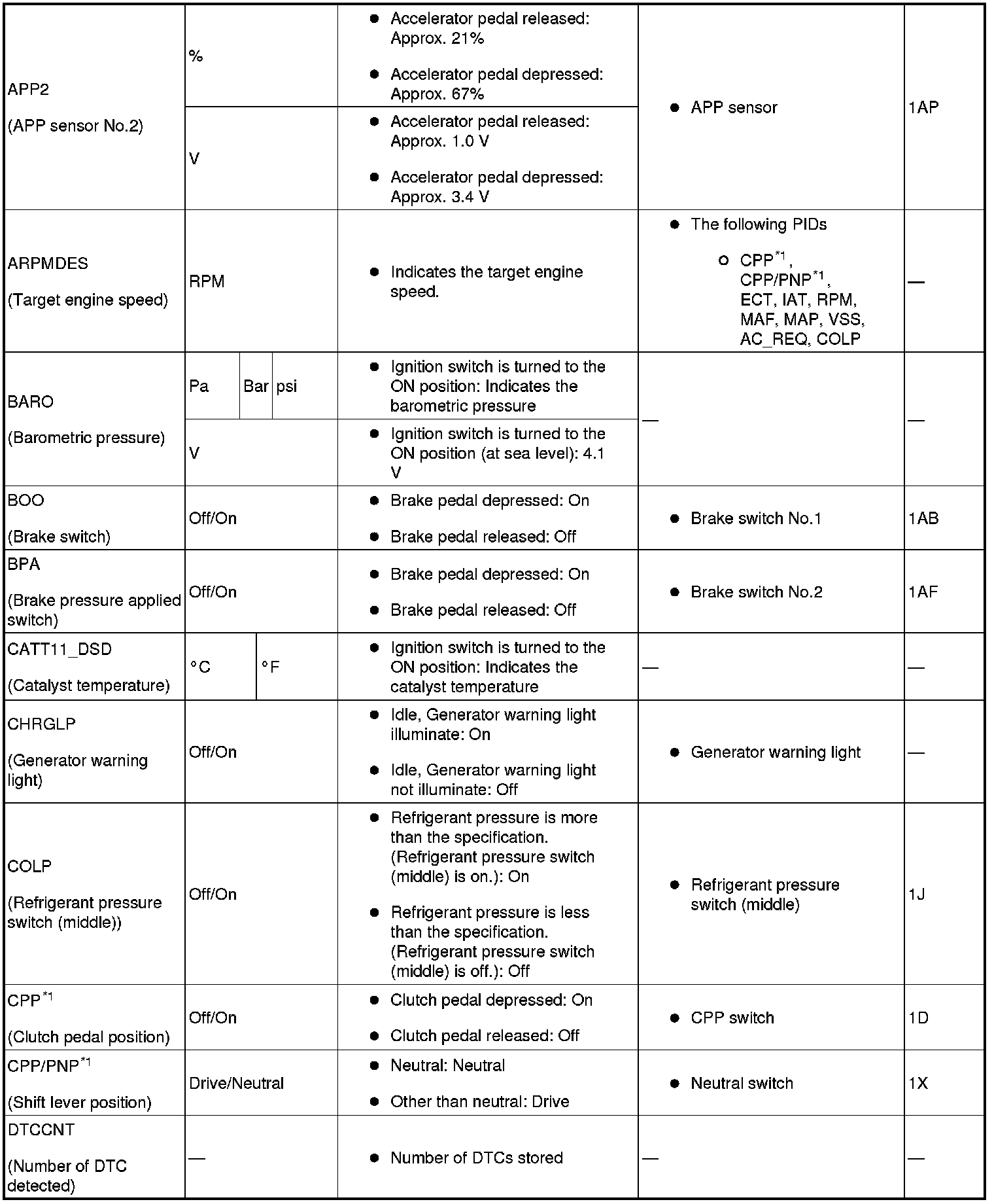 PID/DATA monitor table (reference)