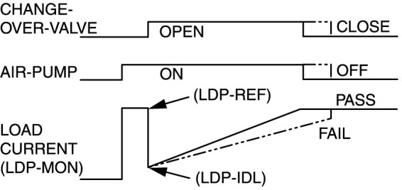 - The PCM continues to monitor the air pump load current value (LDP_MON PID) until the end of the test.