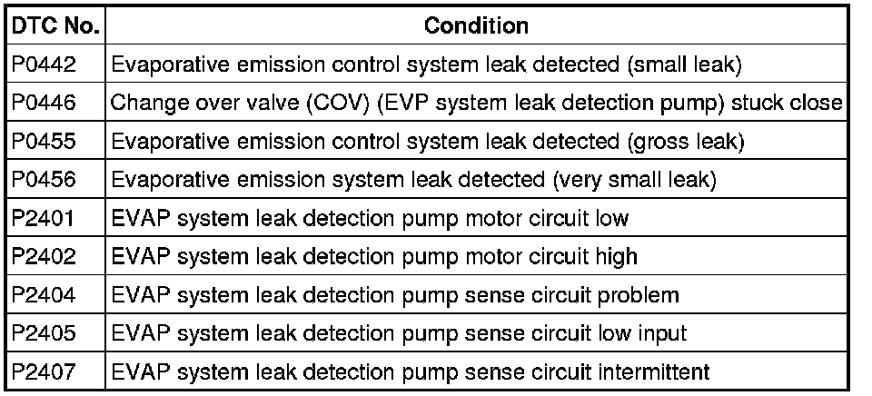 - The EVAP system test finds gas leaks in the system using the PCM to monitor changes in the air pump load current of the EVAP system leak detection pump. This test starts after sending an on-demand test signal from the M-MDS to the PCM. The PCM controls the air pump and change-over-valve operation and also stores the load current of the air pump as follows: