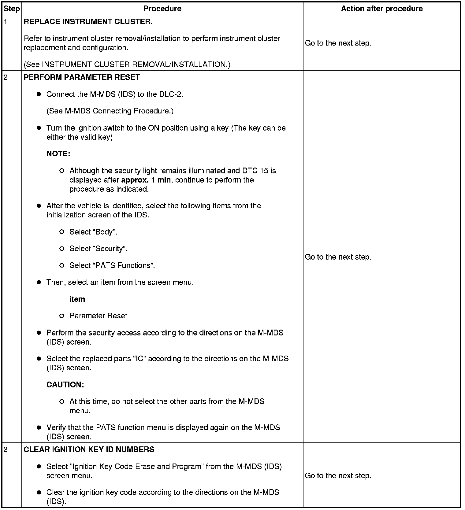 No.6 Programming Procedure Due to Simultaneous Replacement of Immobilizer System-related Parts (PCM and Instrument Cluster)