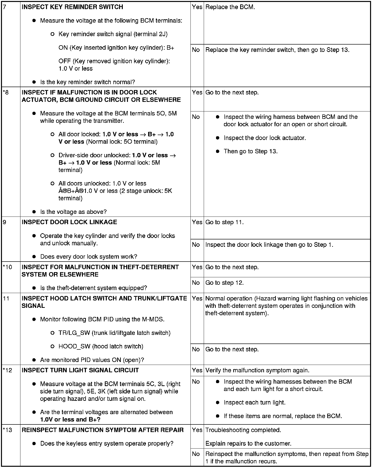 Home >> Mazda >> 2012 >> Mazdaspeed3 L4-2.3L Turbo >> Repair and Diagnosis >> Body and Frame >> Locks >> Keyless Entry >> Testing and Inspection >> Symptom Related Diagnostic Procedures >> Keyless Entry System >> No. 1 Keyless Entry System Does Not Operate Normally