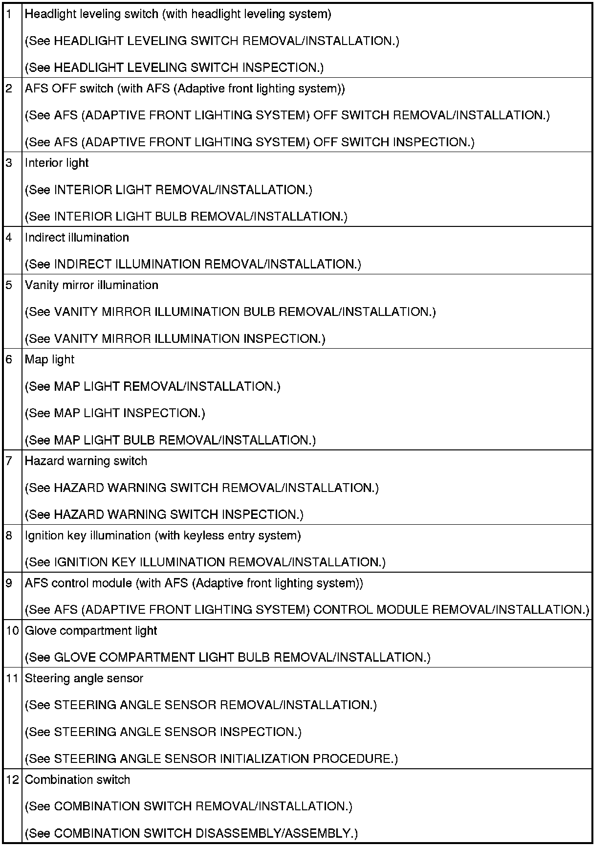 LIGHTING SYSTEMS LOCATION INDEX