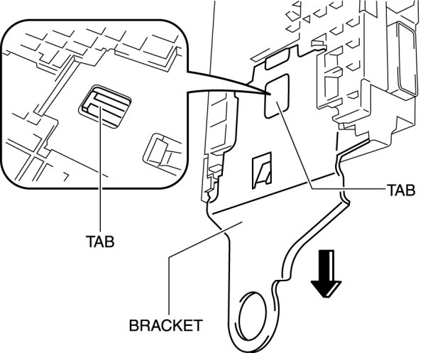 11. While pressing the tab shown in the figure, pull the bracket in the direction of the arrow and remove it.