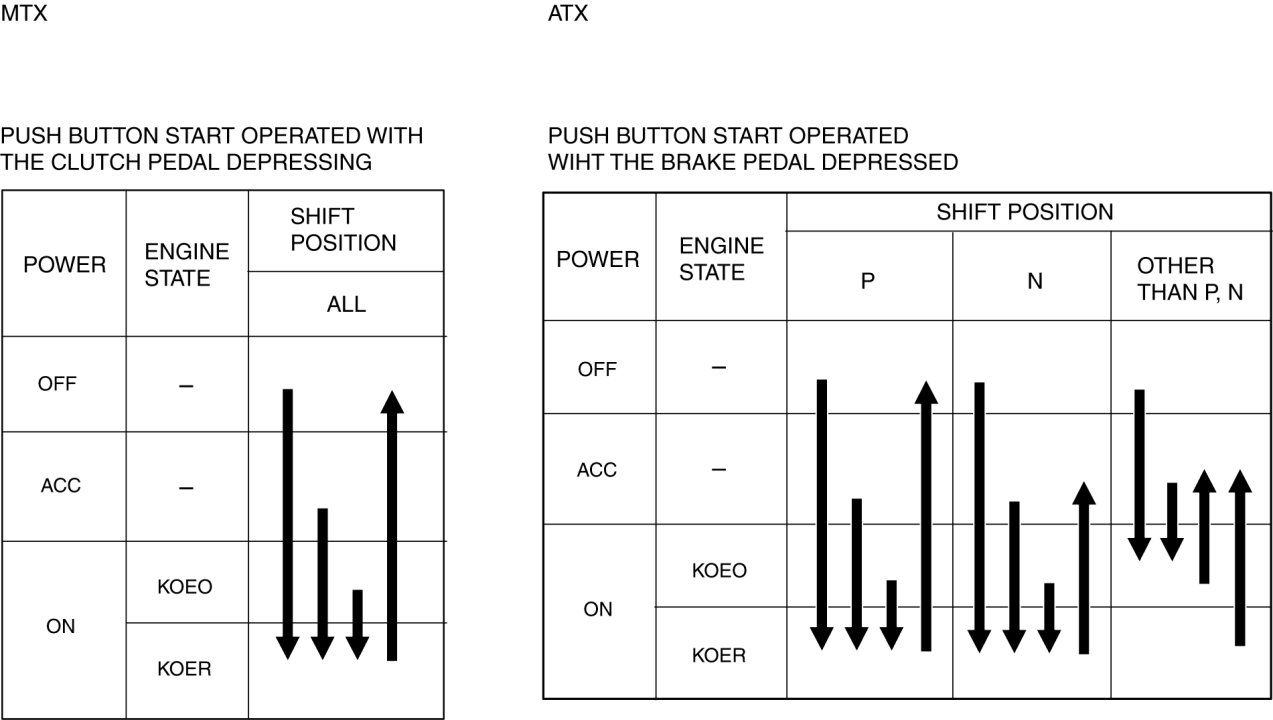 - The engine can be started as follows by operating the push button start with the engine start conditions met. (Engine is running)