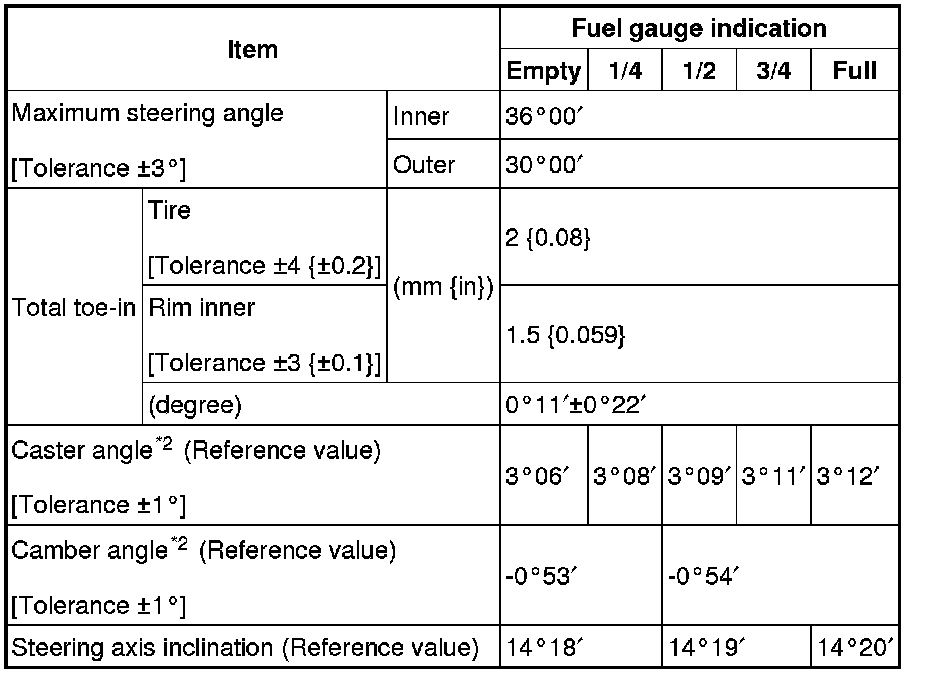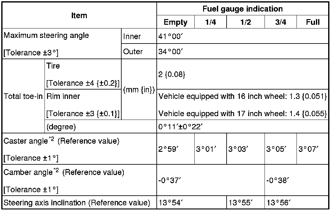 Front wheel alignment (Unloaded)*1 [MZR 2.0, SKYACTIV-G 2.0, MZR 2.5]