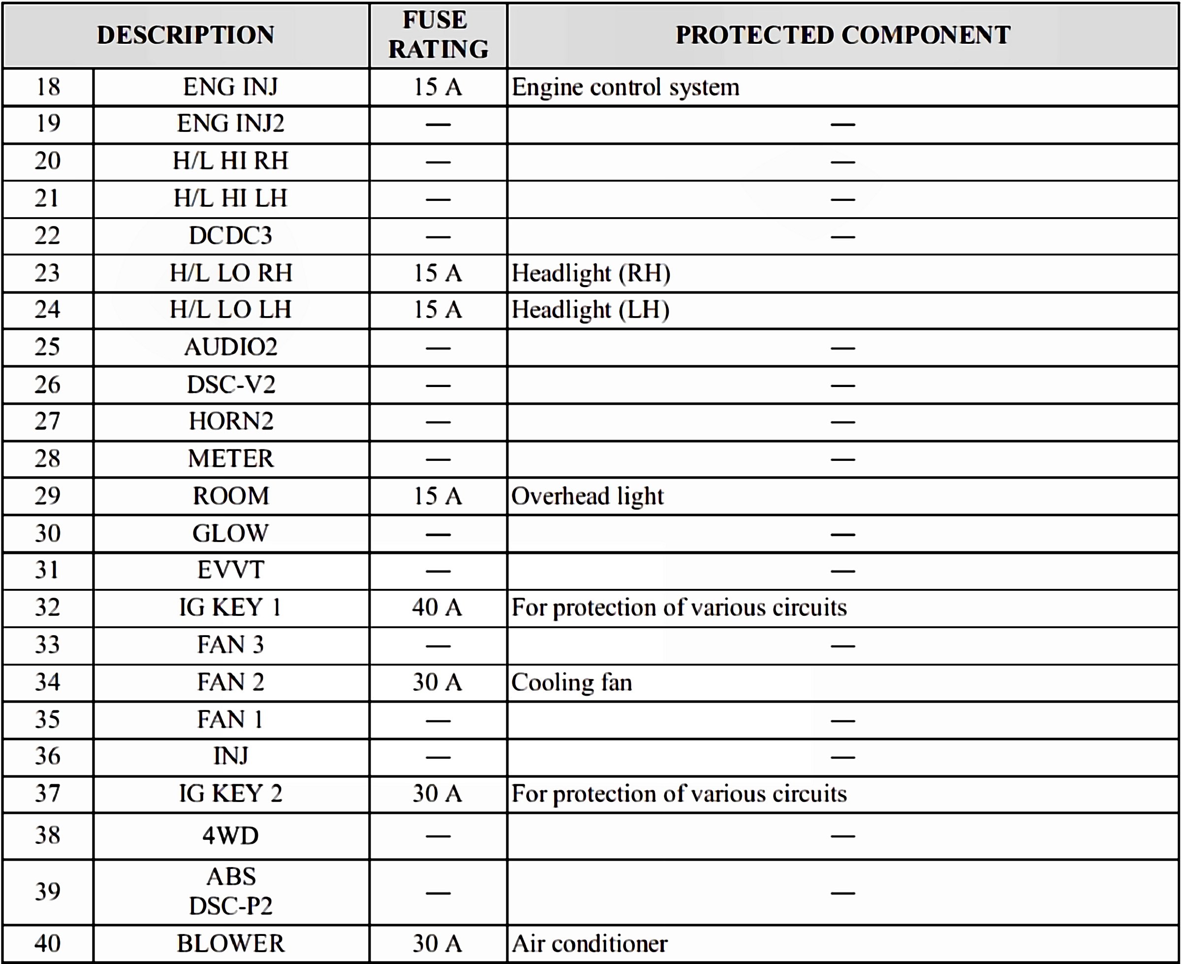 Fuses 18-40: