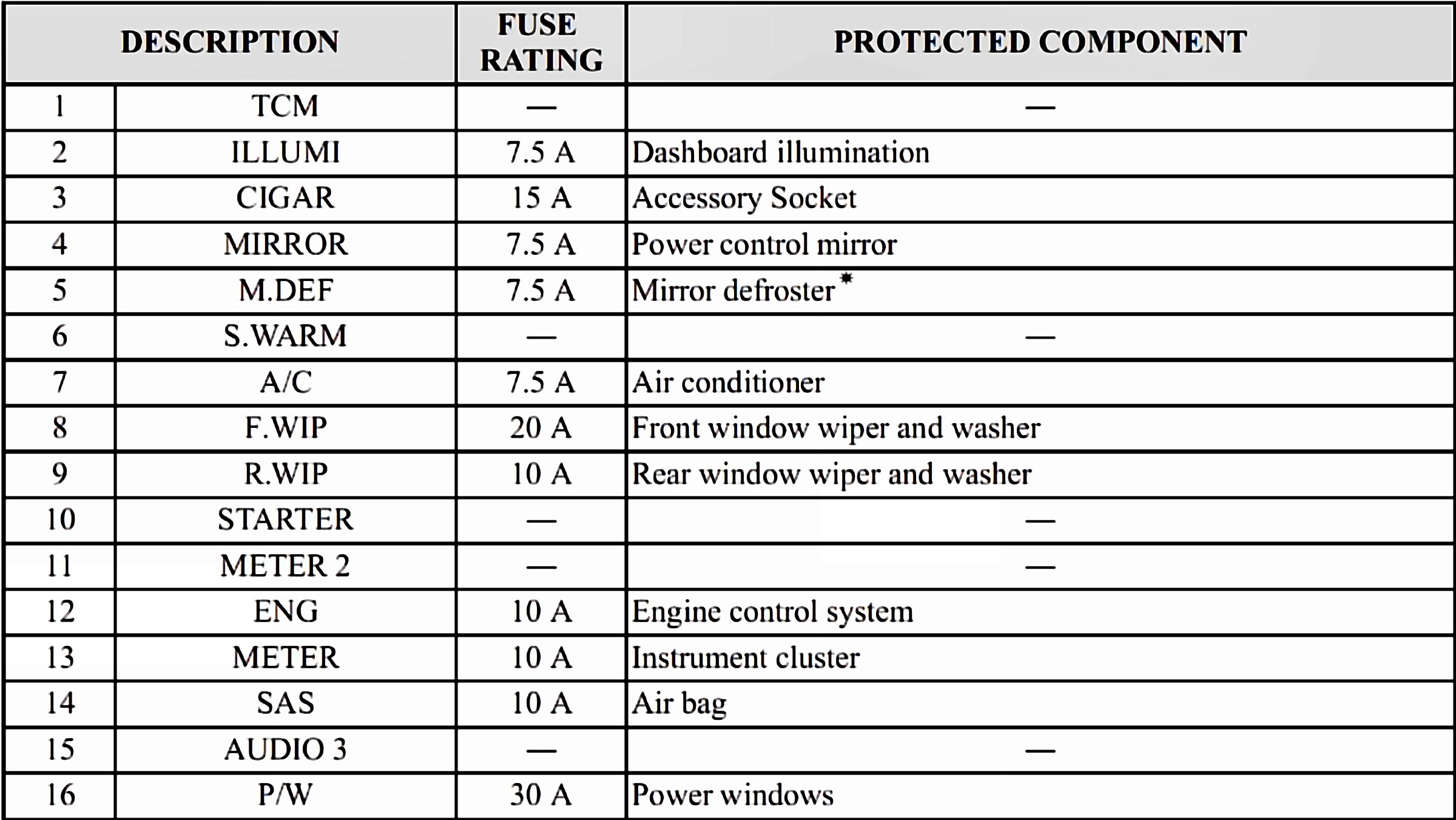 Fuses 1-16: