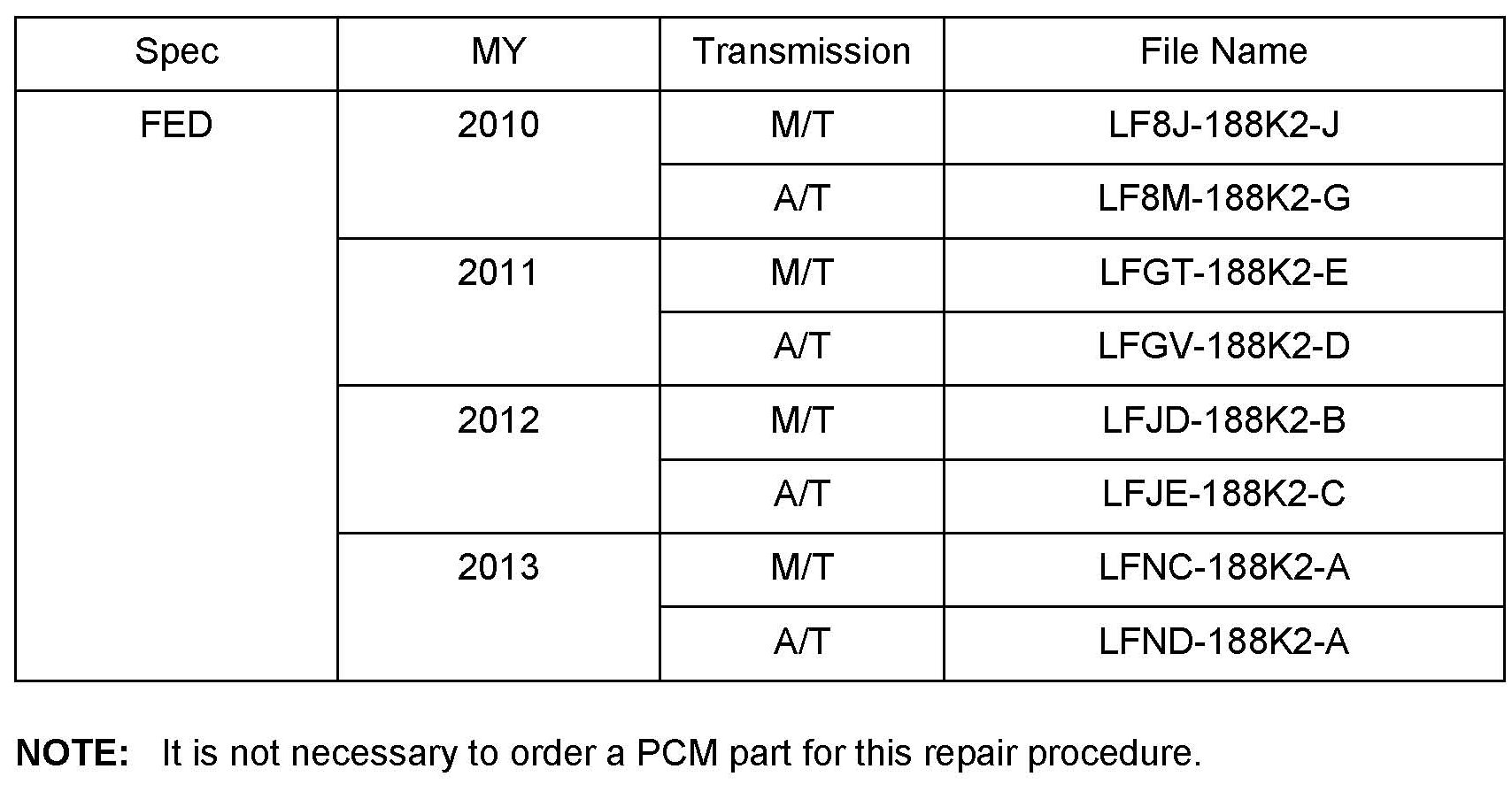 ^ Please be aware that PCM calibration part numbers and file names listed in any Service Bulletin may change due to future releases of IDS software, and additional revisions made to those calibrations for service related concerns.