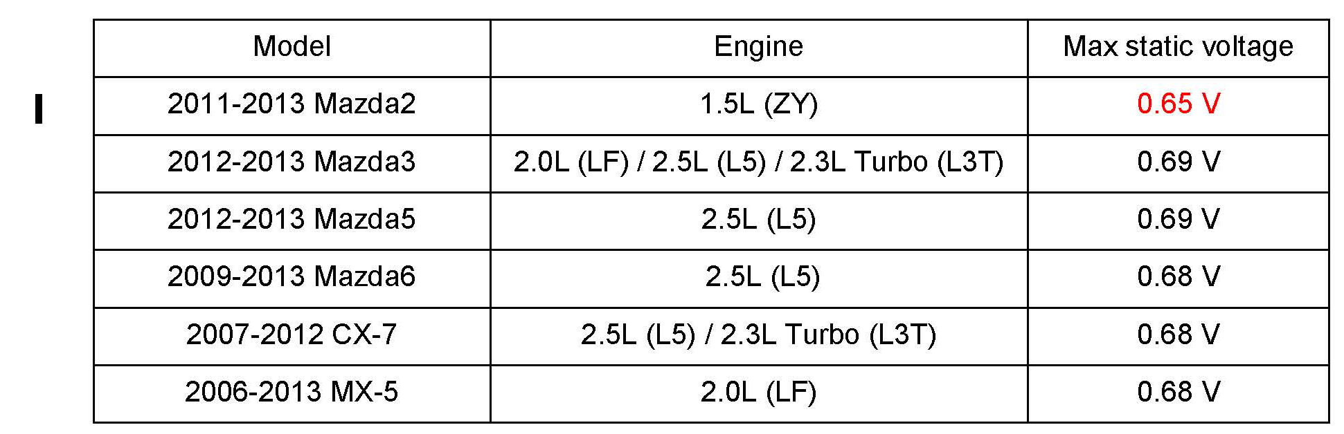 2. Wait 30 seconds, then check PID "MAF" voltage and compare it with the maximum static voltage shown in the chart.