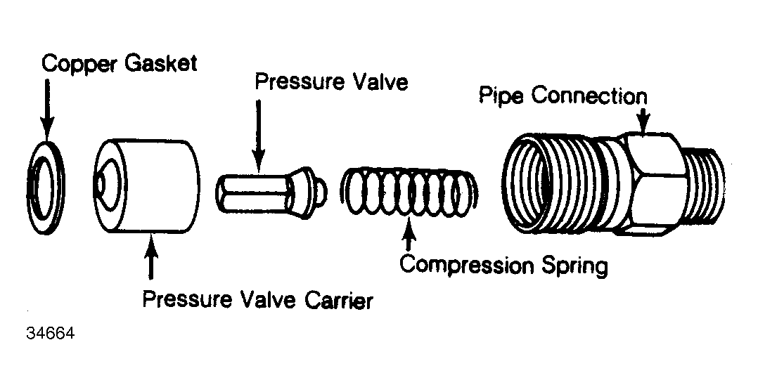 2. Clean pump connections. Remove vacuum hoses from pump. Remove No. 1 injection line, then unscrew pipe connection and remove compression spring and pressure valve. Leave pressure valve carrier and copper gasket in place. See Fig 1 .